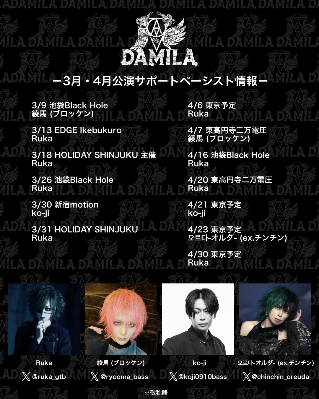 3月・4月公演サポートベーシスト情報