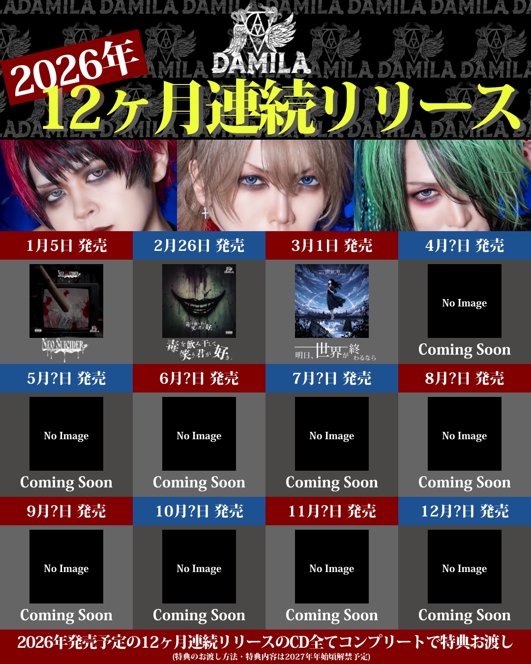 ・2026年発売予定の12ヶ月連続リリースのCD全てコンプリートで特典お渡し(特典のお渡し方法・特典内容は2027年年始頃解禁予定)